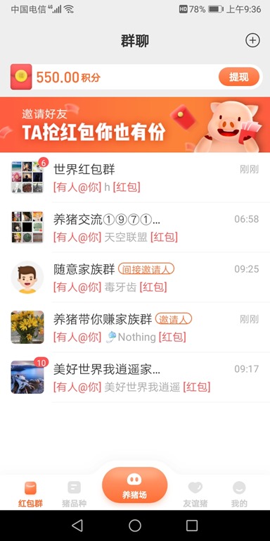 一起来养猪》模式和陀螺世界相差不大,优点在于猪类型种类更多更丰富,奖励多样,有红包群每天可以领取。