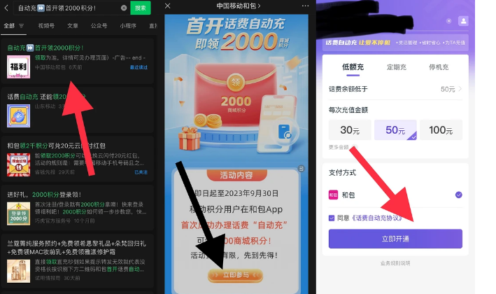 然后进入文章后点击立即参与,然后会跳转转到和包APP,点击立即开通
