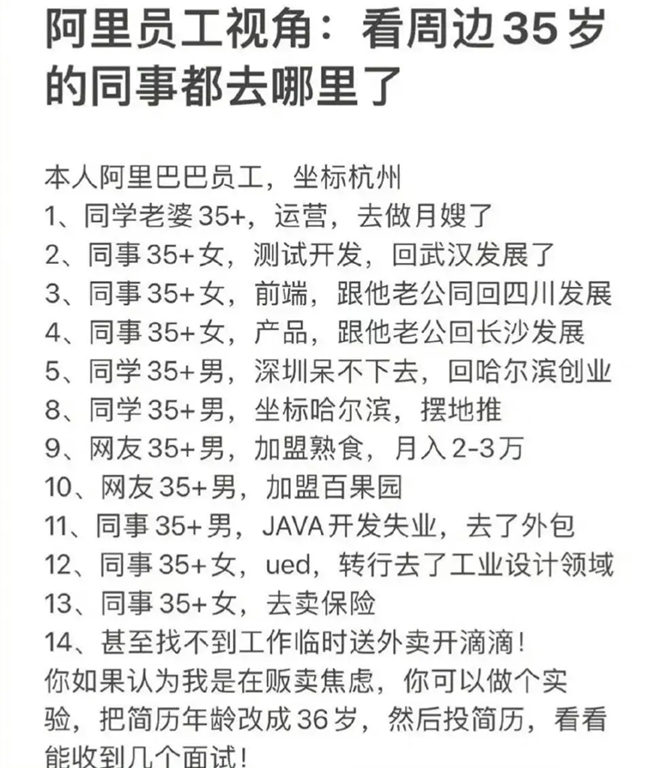中国老板是最不喜欢员工舒服的人 !瑞士好企业文化,双休日,节假日该休息就休息,不得加班,否则作辞退处理。和老板出门,永远是老板买单,这是规矩。阿里员工周边35岁同事都去哪里了?中国人多,内卷和人手一本葵花宝典。国内博士来深圳竞争做中学老师,清北尽头是深圳中学!