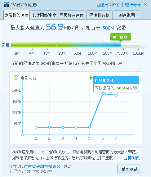 深圳移动300M宽带+TP千兆路由器+千兆网线+多年前有感情的戴尔笔记本+笔记本电脑内置蓝牙无线WIFI ,结果,高产出 500M家庭网络环境。