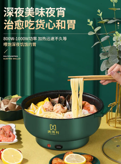 早餐宵夜煮一碗鸡蛋面,可以使用中小型号的电子煮面条专用锅,有调节高温中低温度按键,数字按键显示温度,煮面条很方便的!