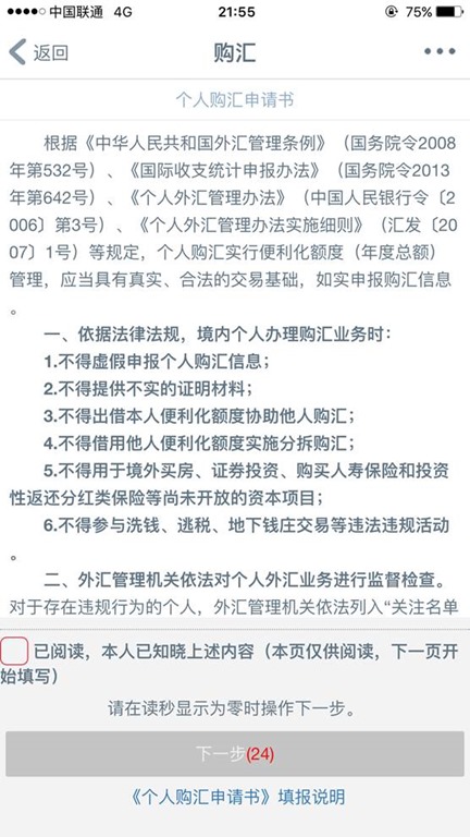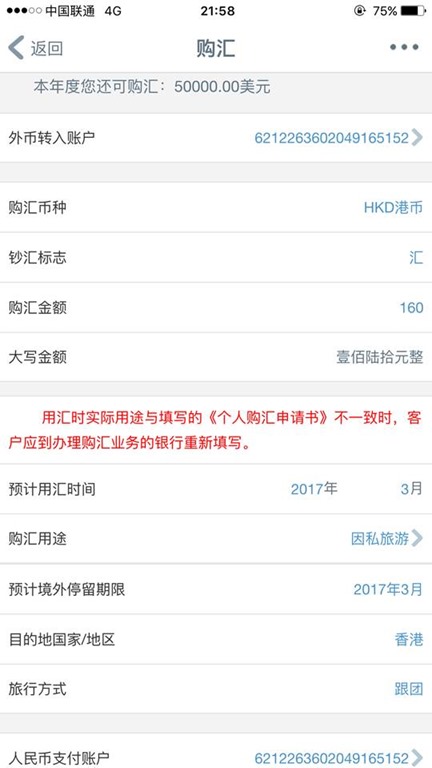 (2)购汇需要查看购汇申请书并且需要填写明细。注意:购汇用途要写因私旅游。