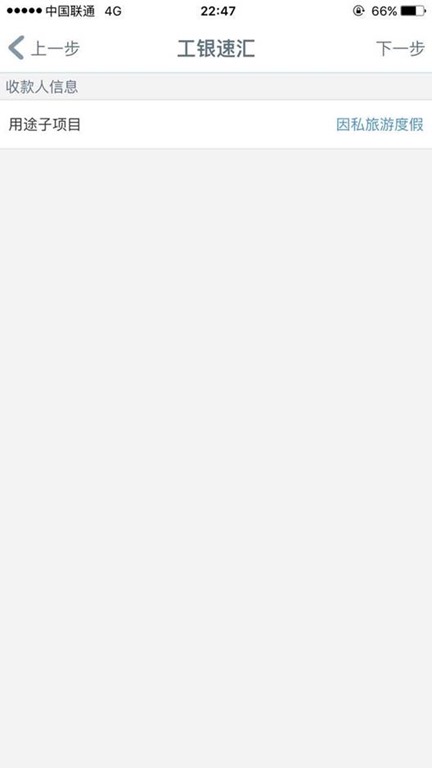 10.用途子项目则选择因私旅游度假,另外输入汇款的金额。
