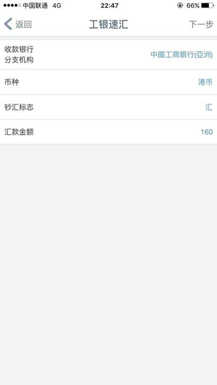 4、使用手机银行工银速汇业务汇至工银亚洲
