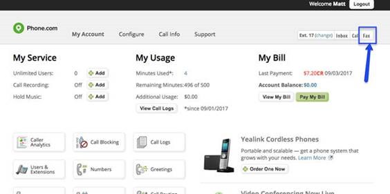 在您注册 Phone.com 后,您只需致电他们的支持团队或进行实时聊天,他们就会向您展示如何发送数字传真。它应该只需要你几分钟。
