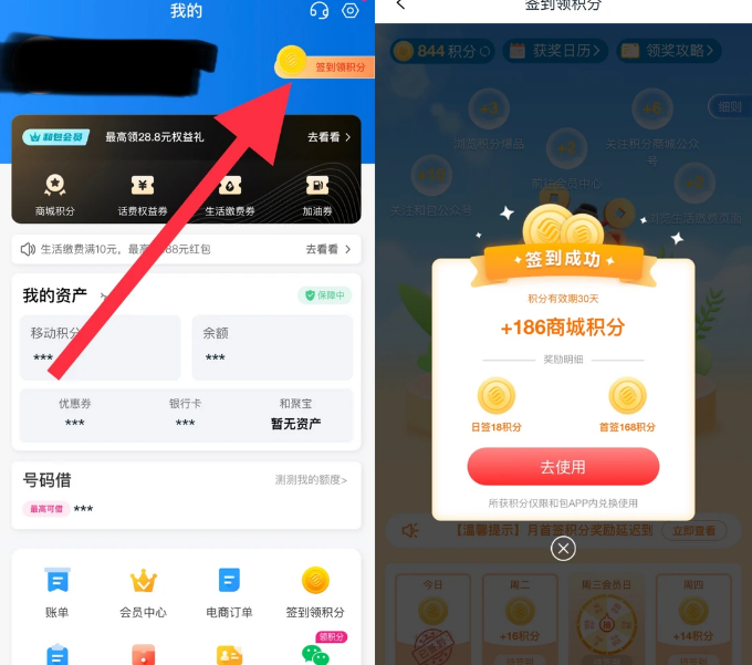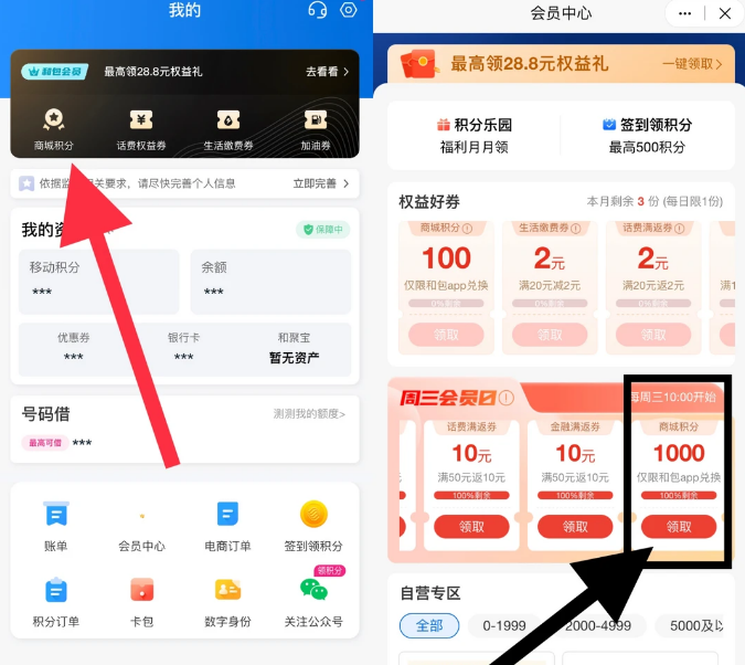 好福利,中国移动《和包》每月直接领1000积分!每月免费拿最高880商城积分,商城积分兑换实物获取收益!