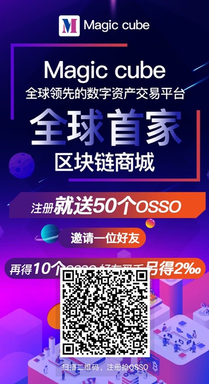 智汇魔方交易所,注册实名送50个OSSO,每邀一人再送10个,值得拥有!