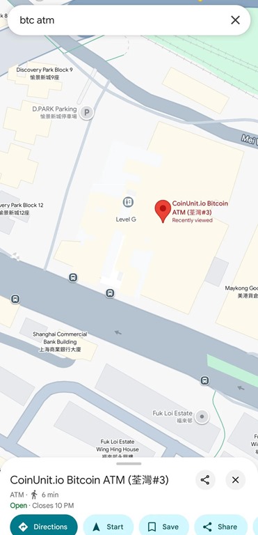 只需要在谷歌地图上搜索“BTC ATM”,然后按照显示的位置找到自助设备。