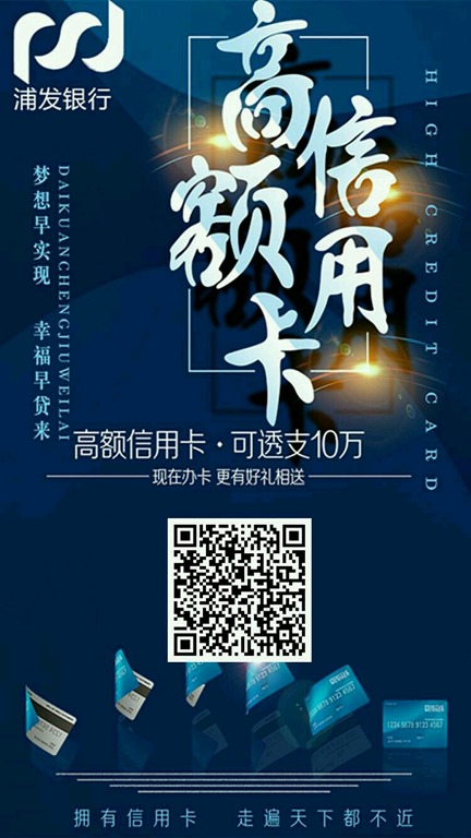 浦发银行给力下卡中~秒批通道快速下卡,超高通过率! 2018年9月23日09:52:12 发表评论 4,666 次浏览 浦发银行给力下卡中~秒批通道快速下卡,超高通过率! 推荐卡种:梦卡之富春山居图,简约白金,青春卡 需要的速度扫码申请。 赞 0 赏 分享