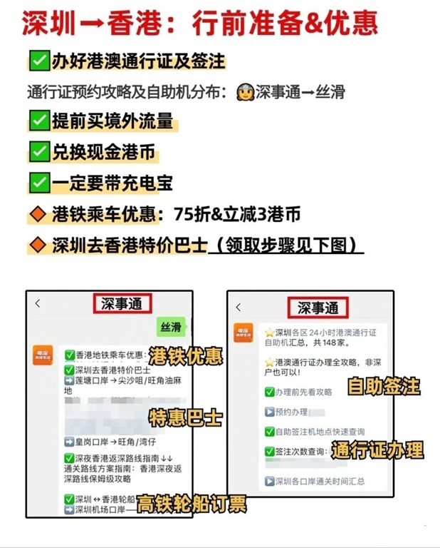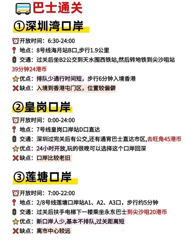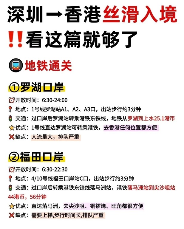 深圳到香港入境指南 地铁通关 高铁通关 轮船通关 巴士通关 深圳到香港出行之前的准备 2025年2月6日20:12:10 发表评论 1,393 次浏览 深圳到香港入境指南 地铁通关: 罗湖口岸 福田口岸 深圳到香港入境指南 高铁通关: 深圳福田站 深圳北站 轮船通关: 蛇口口岸 深圳到香港入境指南 巴士通关: 深圳湾口岸 皇岗口岸 莲塘口岸 深圳到香港 出行之前的准备 赞 0 赏 分享