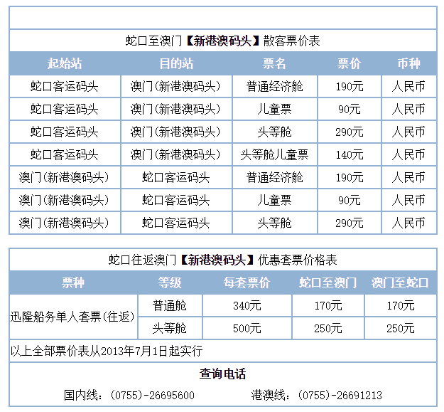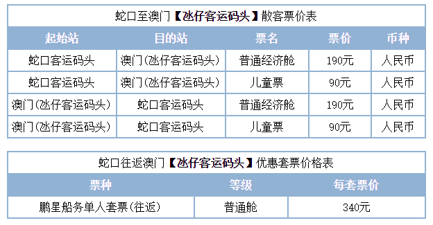 蛇口码头的官网也有票售出,但就是标准价,来回好像都要190元,不像有的阿里旅行那里的店铺从氹仔回蛇口只需要135元。