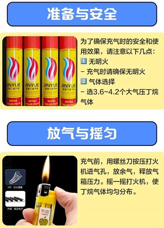 打火机充气准备与安全