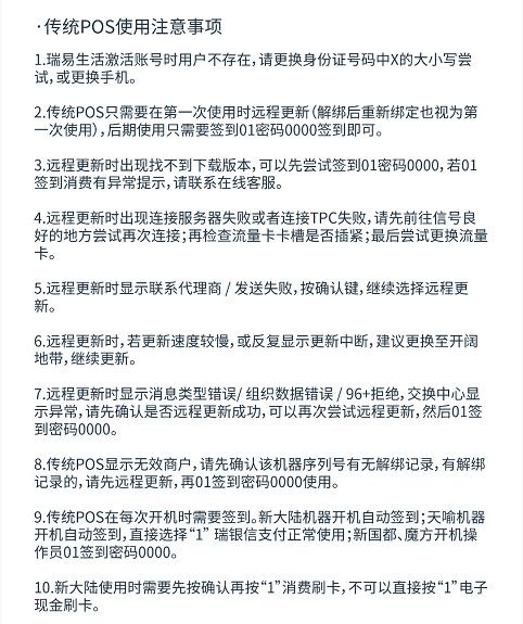 瑞联盟客户传统出票大POS机使用教程及注意事项
