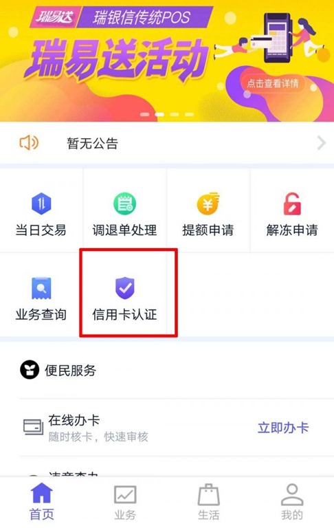 1)微信搜索官方公众号“瑞银信”并关注下载瑞易生活商户版APP或者点击下载:http://www.ruiyinxin.com/ruiyishenghuoshanghu