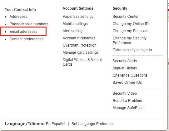 菜单:网上银行右上角 Profile & Settings—>Contact preferences–>Address–>Edit,通过手机APP或者网上银行都可以修改,可能遇到的问题主要是:修改地址后点保存时,银行会自动修正地址,把地址中的房间号、公寓号去掉,导致无法保存正确的地址,怎么办呢?此时只能打电话找客服解决,但是在电话里说清楚一个地址并不容易,我的解决办法是:先保存那个不带房间号、公寓号的地址,然后打电话给客服,让客服帮你把房间号加上即可。