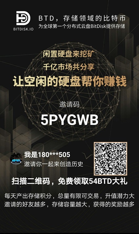 自从360云盘和百度云开启收费和清理“资源”后,对于一款去中化的云存储APP的出现,大家应该是喜闻乐见的!而且这款APP还有价值120元的免费糖果领取,可以贡献电脑和手机存储资源进行挖矿,其代币BTD也已上线IDAX、QBTC等知名交易所(1.25元/枚)。