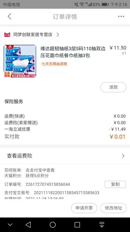 美滋滋 《一淘》一分钱领纸巾 2021年11月18日16:07:49 发表评论 2,679 次浏览 美滋滋 《一淘》一分钱领纸巾 6871F2XxdcVcJ《 https://m.tb.cn/h.f6qJP8M 一淘|官方网购神器,99%商品都减钱,省到怀疑人生! 手机立即扫码,加入一淘,享受一分钱购物超值福利! 1分钱获得抽纸 收货订单详情: 赞 0 赏 分享