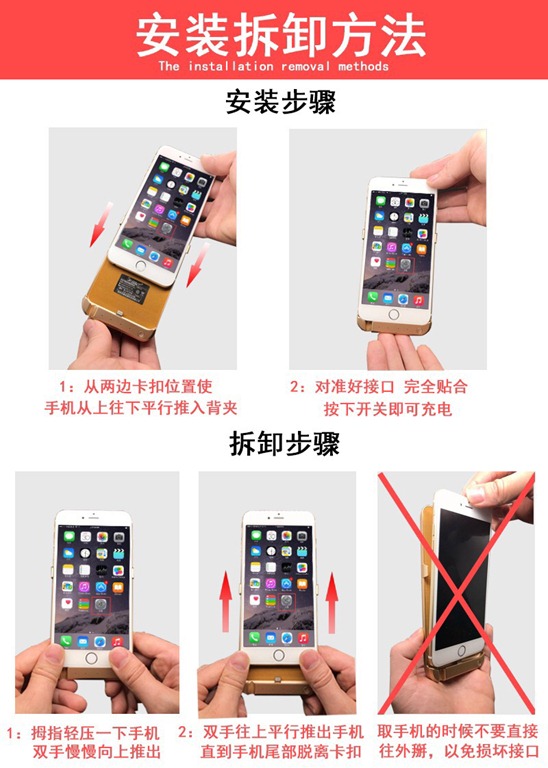*特别注意:手机后面不能有贴膜、钢化膜、手机壳、边框、否则无法安装和充电!!