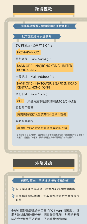 收款人账号:填写中银香港银行的卡号,输入收款人姓名和账号后系统会自动带出收款银行信息