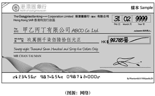 港币:支票金额的文字表示