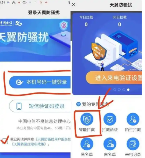 第三步:按页面提示登录手机号后点击智能拦截。