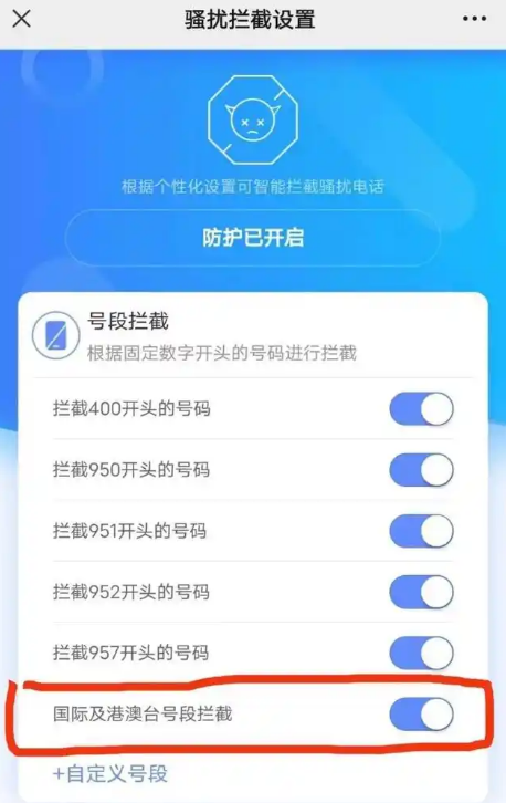 第四步:开启国际/港澳台号段拦截。