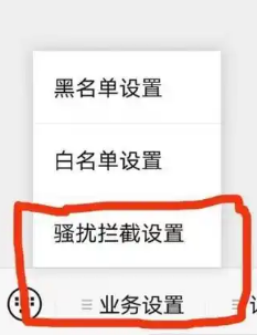 第二步:进入公众号,点击左下角业务设置,选择骚扰拦截设置选项。