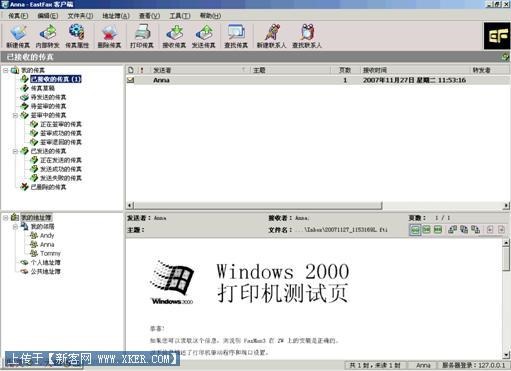 在服务器发送结束后,在客户端会得到服务器端发来的结果信息,如果发送成功则这份传真文件会再归类到“发送成功的传真”,如果发送失败则归类到“发送失败的传真”栏中,而且还可以在“发送结果”列中得知发送失败的具体错误原因,如:对方占线、用人接听、用户取消(表示该份传真对方接听后始终没有给出传真信号)等。