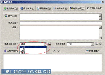 发送传真前,还可以设置一些附加选项,点击新建传真窗口中顶部按钮上的“高级属性”按钮就可以打开该窗口: