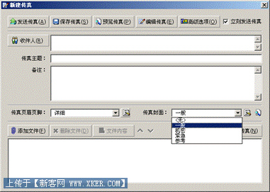 然后是传真封面,封面的作用顾名思义,在所发送的传真前,先发送一份封面。在软件中提供了4种不同内容的封面供用户选择。