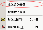 对于发送失败的传真,可以右击该份传真选择“重发错误传真”将其再次提交到服务端进行发送。