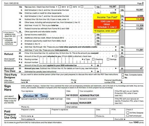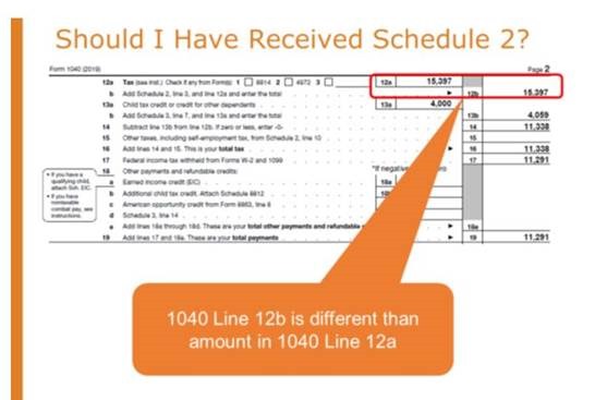 您可能会被要求为您的 1040 提供时间表 1,2 和/或 3。下面的示例将说明是否存在任何或所有时间表。