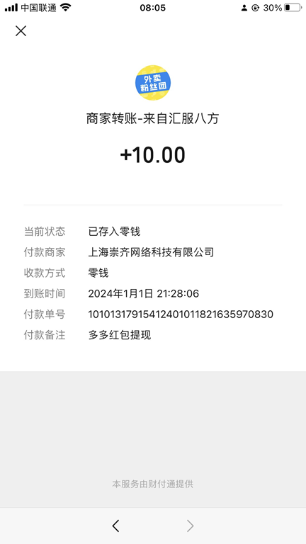 2024年1月1日收到手机赚钱《多多红包》平台收款10元,超强平台值得信赖,赶紧抓住机会赚大钱!
