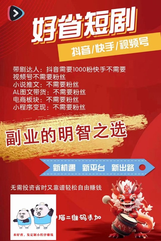 好省短劇 帶劇達人 抖音需要1000粉 快手不需要